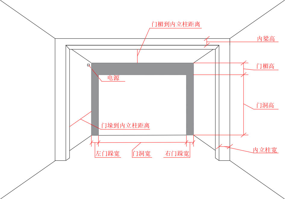 門楣高度:門楣有效尺寸應(yīng)>門全開后的卷軸直徑+100mm,卷軸直徑是隨門洞高度變化的;
