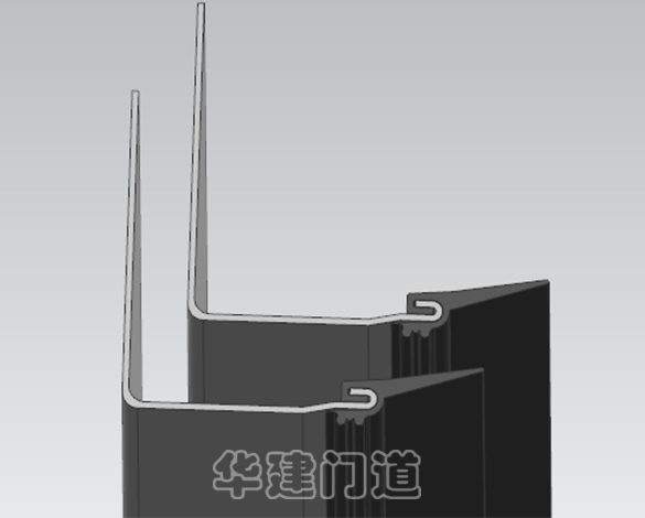華建鋁藝車庫門配備的軌道護(hù)軌及密封件(如圖),軌道護(hù)軌采用帶止退鉤造型,可防止車庫門安裝好后密封件被外力從軌道護(hù)軌上拉拽脫落。密封件采用三元乙丙橡膠材質(zhì),日曬雨淋均不變質(zhì)老化、開裂。 | 市場(chǎng)中低質(zhì)車庫門不配或配低端的軌道護(hù)軌及密封件,也有部分產(chǎn)品(如圖)軌道護(hù)軌為簡(jiǎn)單的折角處理,無止退鉤,門安裝好后密封件可用外力從護(hù)軌上拉拽掉,密封件為劣質(zhì)PVC材質(zhì),易變質(zhì)老化、開裂。 | |