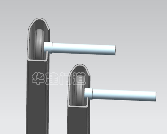 華建鋁藝車庫門的軌道采用收口型(如圖),具有防止軌道中滑輪脫出軌道的功能,徹底解決了車庫門滑輪易脫落軌道的常見故障,保證了車庫門使用的順暢性,降低了車庫門的故障率及使用成本。 | 市場(chǎng)中低質(zhì)車庫門的軌道采用開口型(如圖),軌道滑輪受各種外在因素的影響,容易脫出軌道,在車庫門的使用中一旦滑輪脫出軌道,那么車庫門就將不能運(yùn)行,需要維修,因此故障率及使用成本將升高。 | |